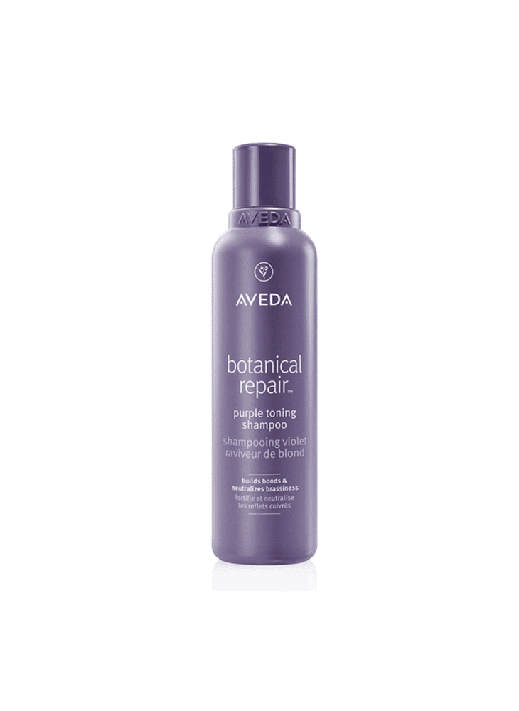 The Botanical Repair™ Purple Toning Shampoo by Aveda is a restorative shampoo infused with violet pigments that visibly brighten blonde, lightened and grey hair. This sulfate-free formula, made with 96% naturally derived ingredients, strengthens hair from within and helps repair damage using plant-powered bond-building technology. The refreshing Pure-Fume™ aroma provides a sensorial experience with every wash.