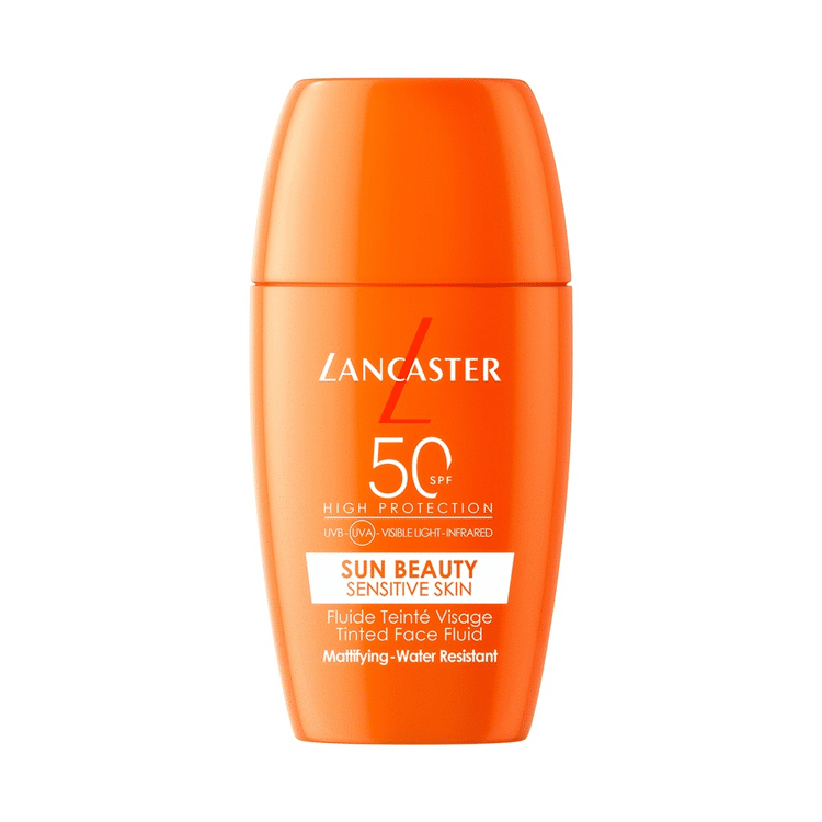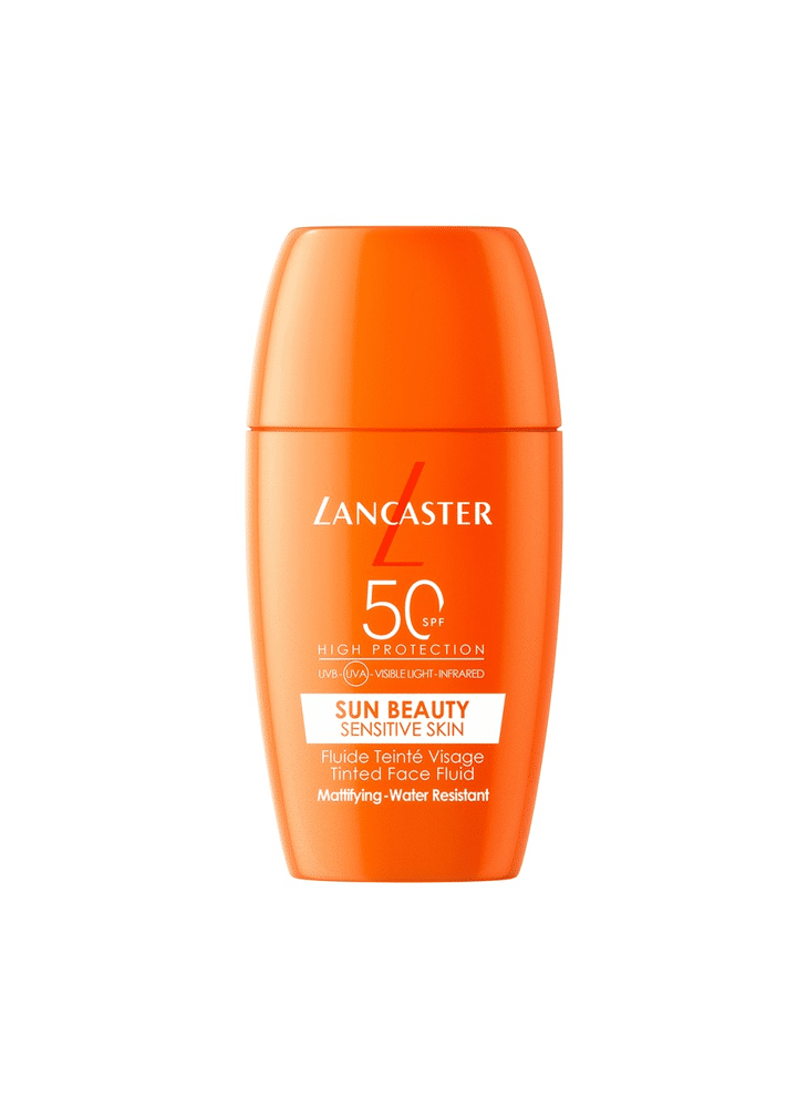 Lancaster Sun Beauty Sensitive Skin Tinted Face Fluid SPF50 offers our broadest sun protection in a formula suitable for sensitive or reactive skin with 100% mineral filters. Our Full Light Technology™ provides 10x broader sun spectrum technology* while the Sunsicalm Complex reduces redness and discomfort. This lightweight, lightly tinted, and oil-free fluid melts instantly into the skin, blurs imperfections, and perfects the complexion, leaving a matte finish. Fragrance-free and allergen-free, it is suitable for sensitive skin.