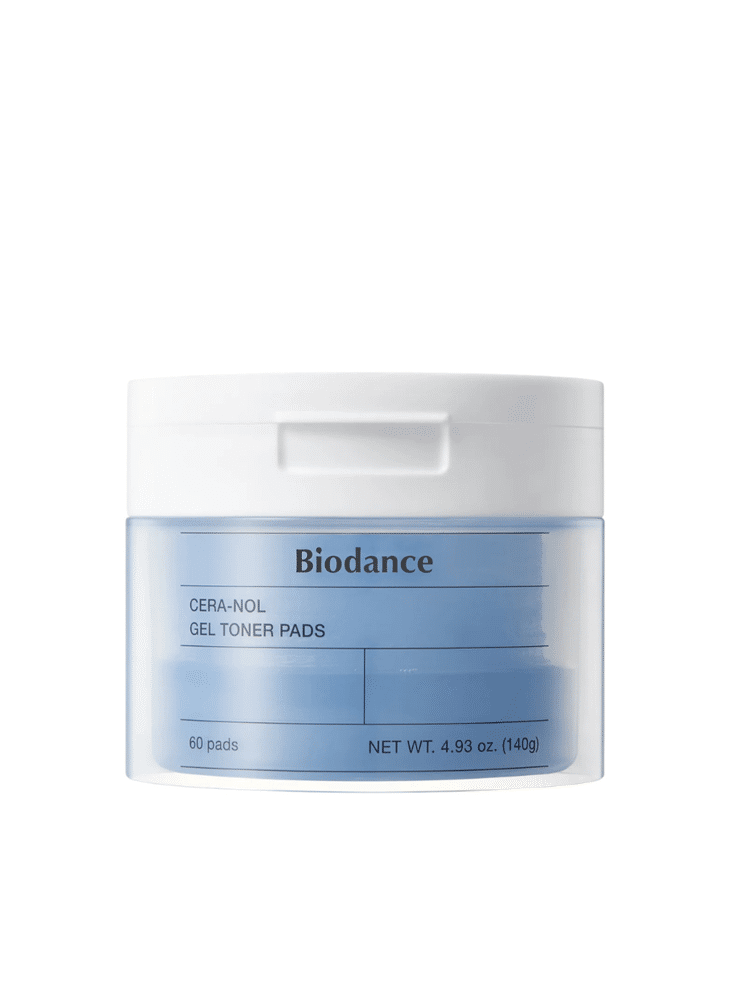 Kalmerende gel-toner pads met panthenol, ceramiden en hyaluronzuur voor directe hydratatie en versterking van de gevoelige huidbarrière.