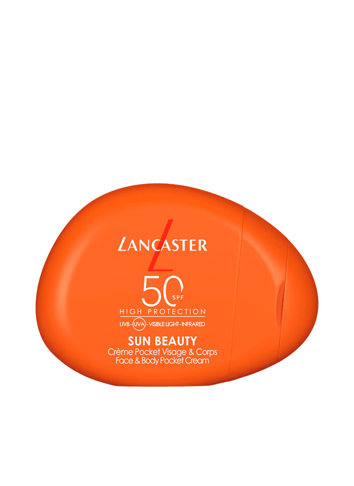 Lancaster Sun Beauty Face & Body Pocket Cream SPF50 biedt zeer brede zonbescherming met hydraterende verzorging in een compact reisformaat voor gezicht en lichaam.