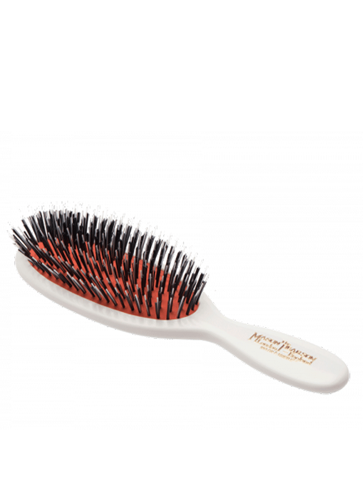Bristle Mixed Pocket BN4 borstel is gemaakt van zwijnenhaar gecombineerd met nylon (mix). Het is een pneumatische ovalen borstel met een rood kussen. De Mason Pearson mix is het beste geschikt voor normaal tot dik haar.